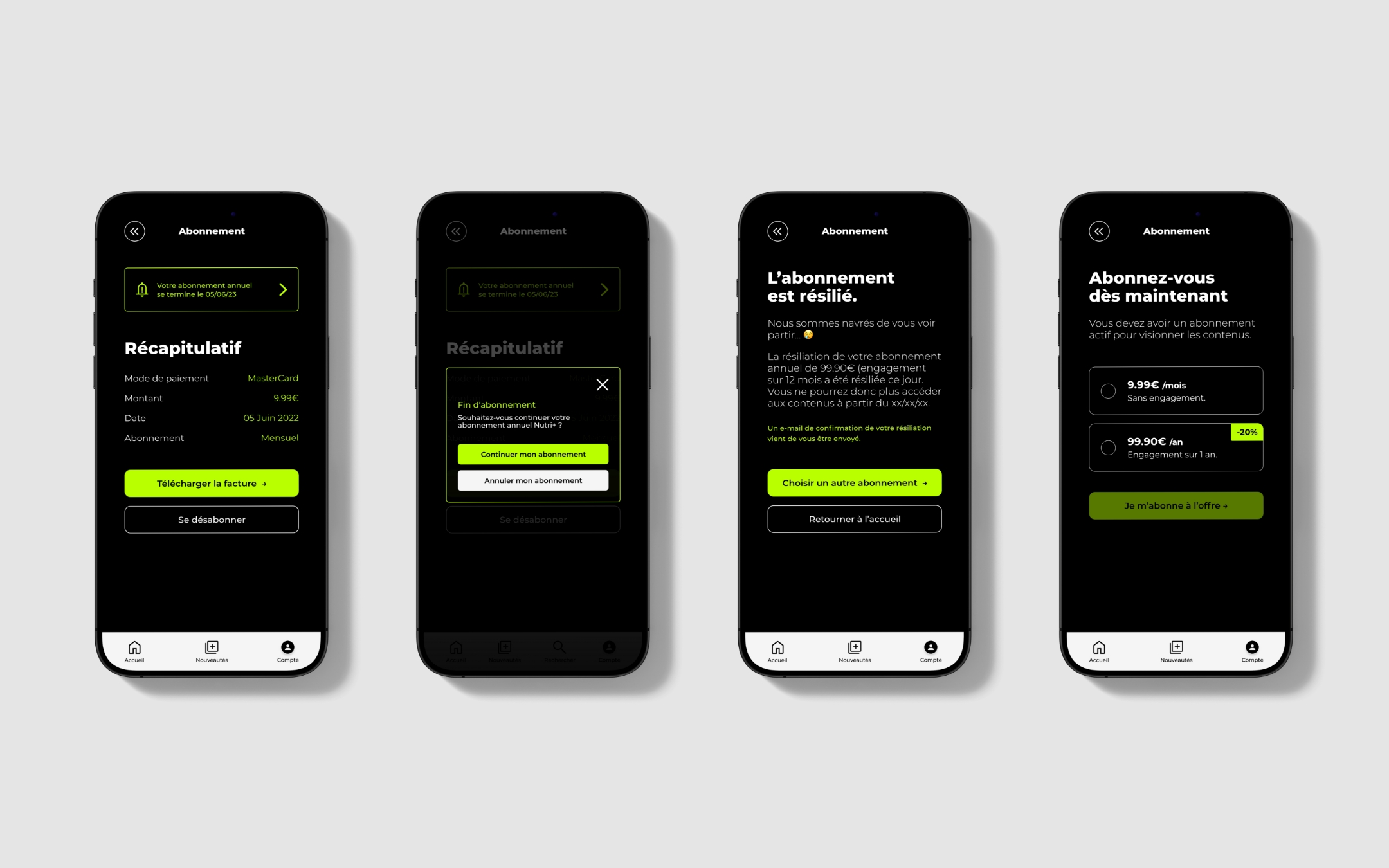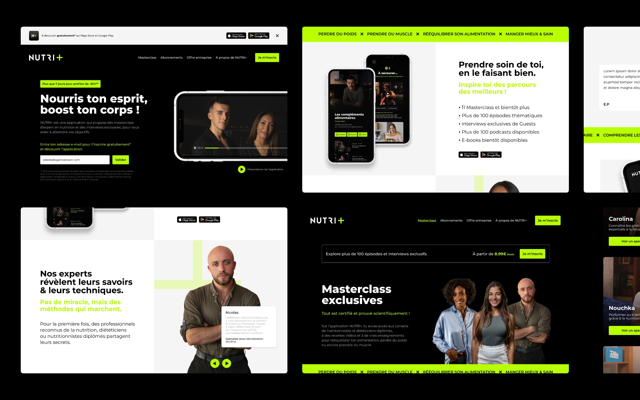 La démarche consiste à concevoir une stratégie de marque, établir une entité distinctive, englobant tous les aspects, du choix du nom au logotype, dotée d’une identité visuelle puissante adaptable à tous les supports de communication. Au cœur de cette stratégie se trouve l’application, qui propose l’accessibilité aux masterclass des experts en nutrition, ainsi que des fonctionnalités innovantes et un espace personnalisé. L’application doit créer une expérience enrichissante.