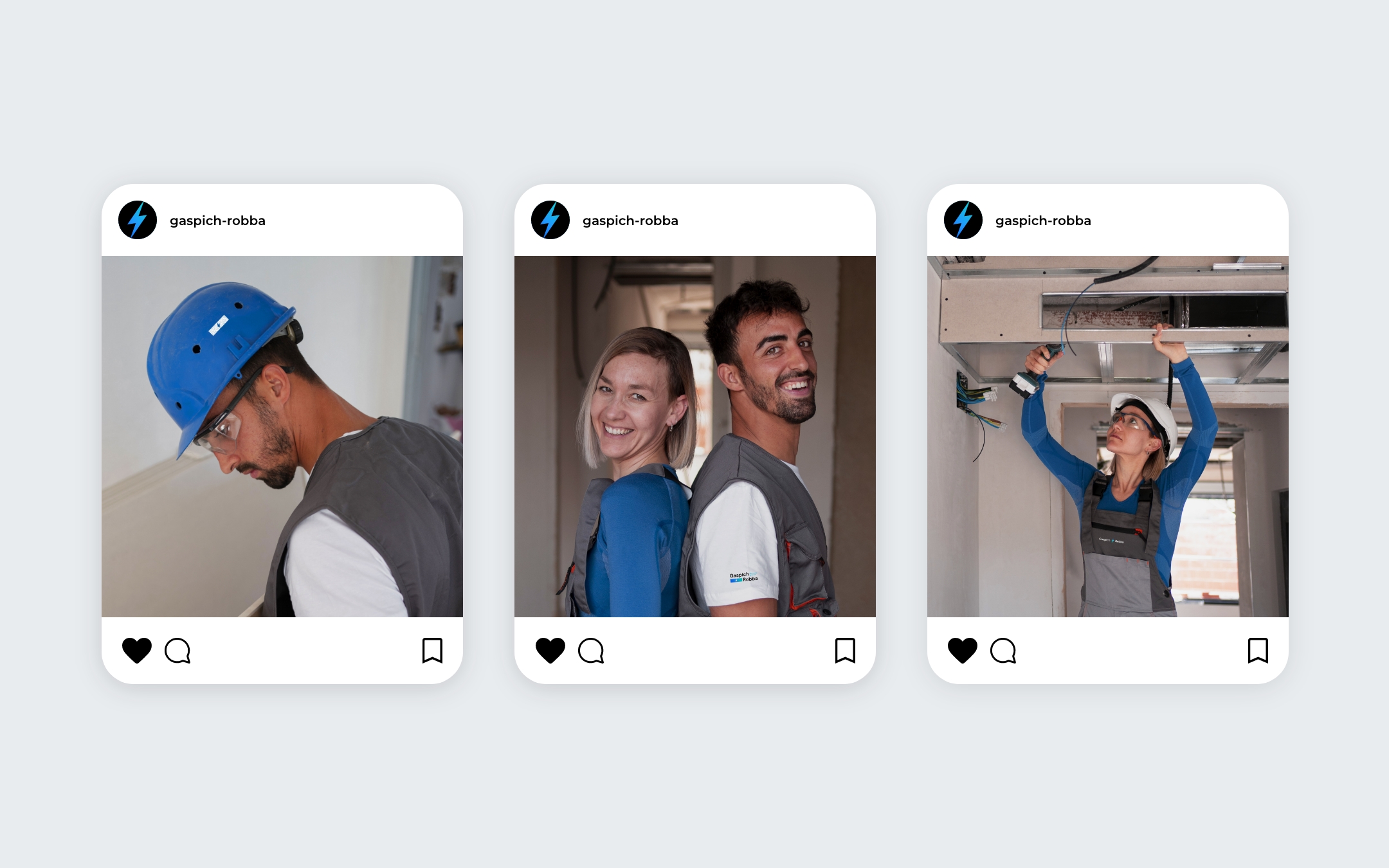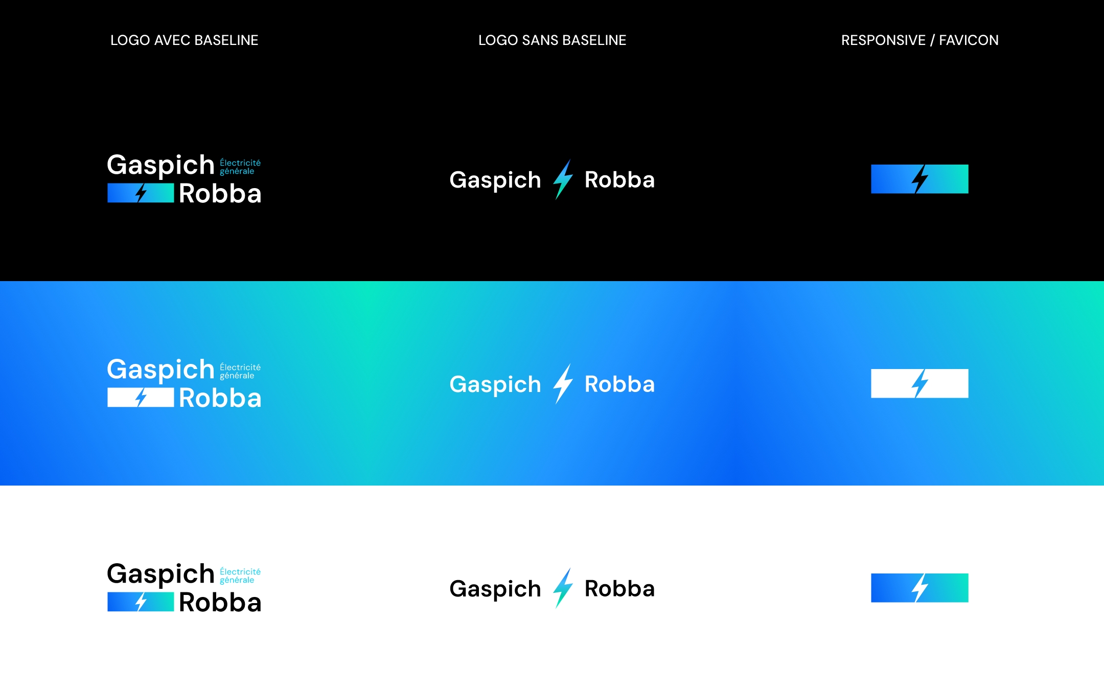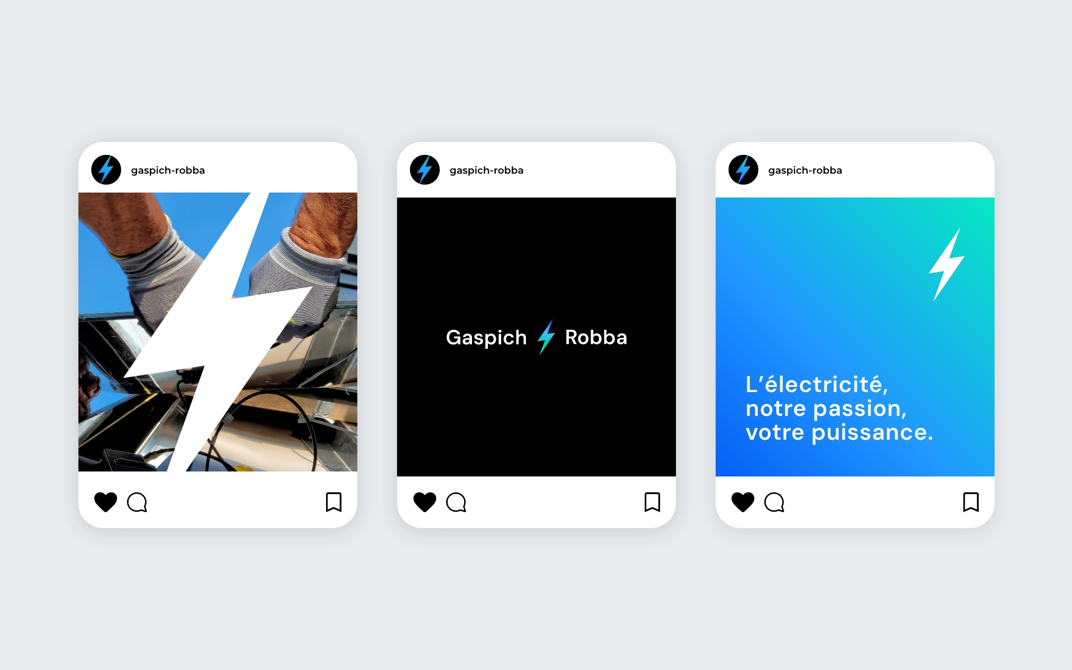 Le rebranding de Gaspich Robba incarne donc la modernité et la vitalité. Nous avons réinventé son identité visuelle, illuminant ses couleurs avec une énergie renouvelée. Le nouveau logotype, vibrant et dynamique, évoque l’engagement envers l’innovation et le savoir-faire, tout comme un arc électrique éclatant dans l’obscurité.